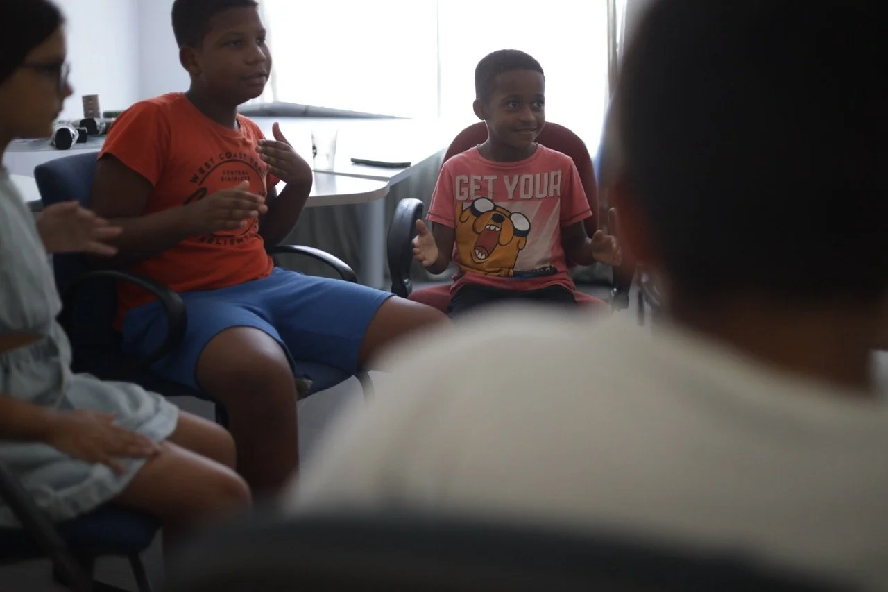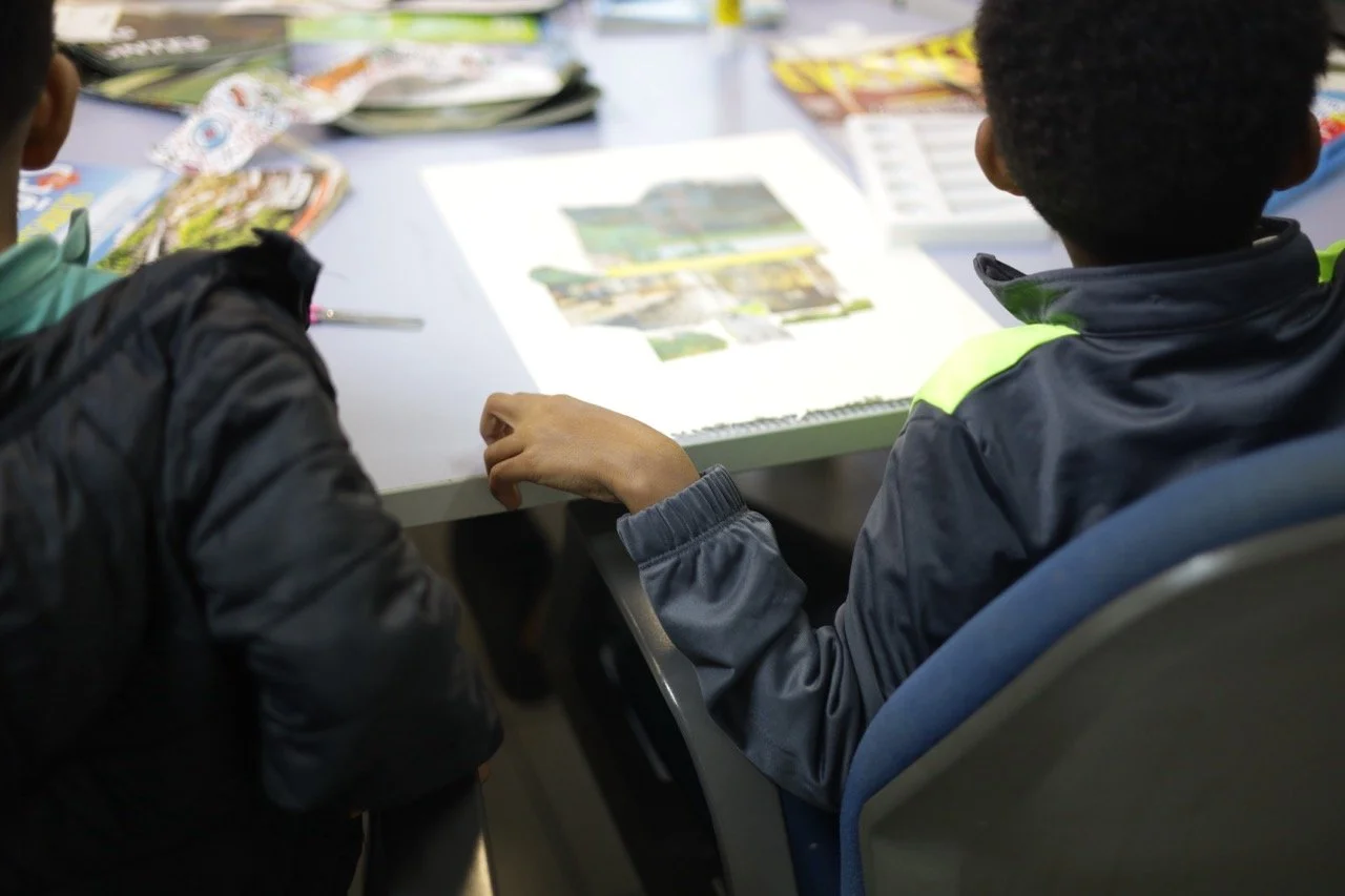 Saímos de um e entramos noutro... No Quarto da criatividade e da cidadania promovemos a criação colectiva e os projectos colaborativos. Penso Rápido convida a comunidade a pensar e a agir sobre temas actuais através da criação contemporânea, a partir de grandes eixos — ambiente, cidadania, educação, entre outros. Estimulamos o pensamento crítico e a expressão criativa, transformando ideias em narrativas visuais com impacto social. O projecto procura fortalecer a auto-estima, a participação e a coesão comunitária, mostrando que a criatividade é também uma forma de cidadania.
