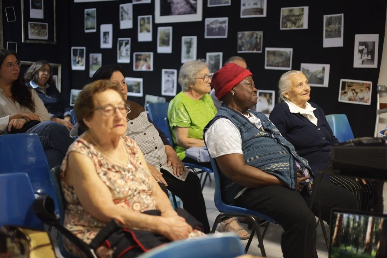 A Casa tem todas as portas abertas ao mesmo tempo. No Quarto da memória e do diálogo damos lugar ao Lugar da Fala. Reconhecemos na velhice um território de memória e de presença. A voz que envelhece pode ser um testemunho de resistência contra o silêncio. Damos lugar à fala — e à escuta —, ao diálogo intergeracional, e criamos um espaço para a expressão, onde a palavra devolve sentido. Propomos, através da arte, um diálogo entre gerações que valoriza a experiência, preserva a memória e reafirma o direito de todos a serem ouvidos.