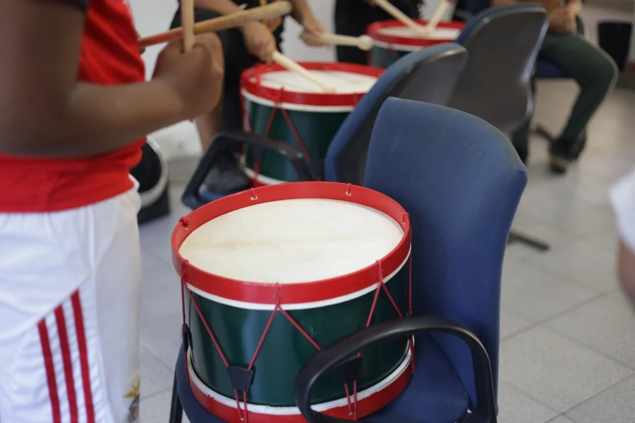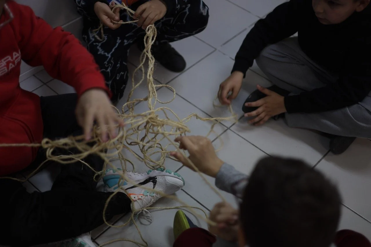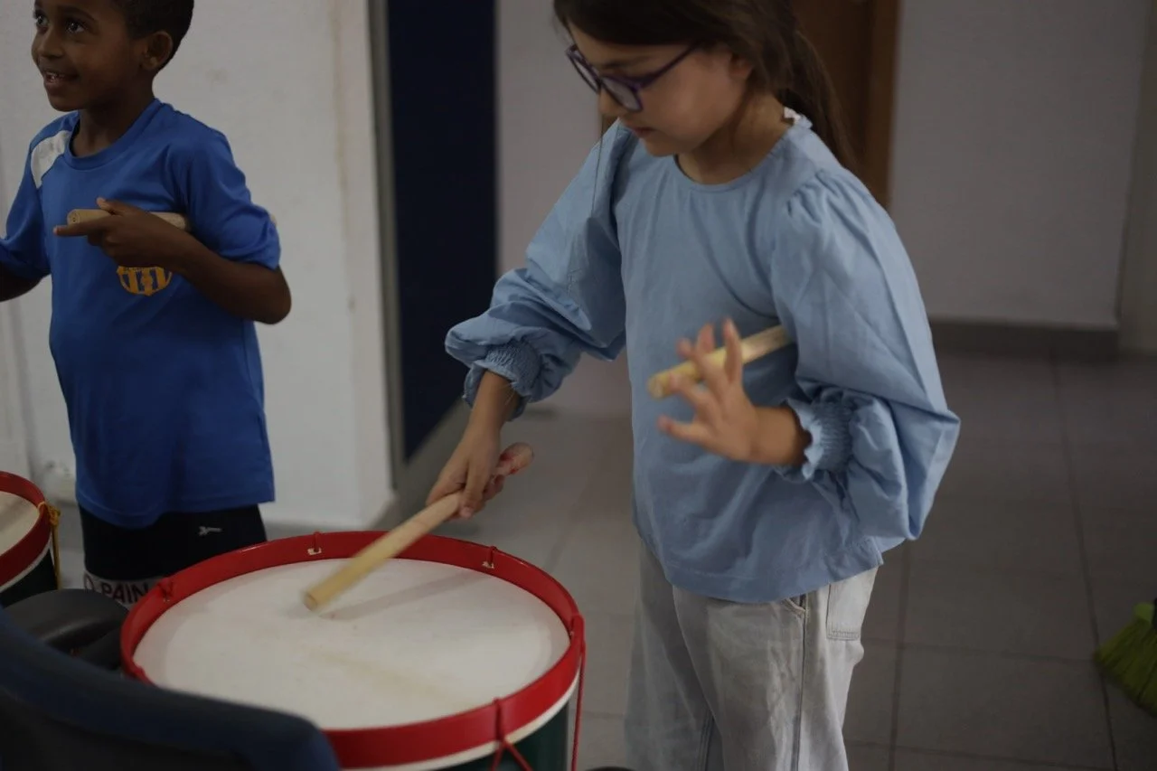 No fim do corredor, que é também o início, chegamos ao Quarto do som e do barulho. Aqui exploramos o som, transformando corpo e objectos em instrumentos de criação. Experimentamos o gesto, o ritmo e a escuta, cultivando a criatividade e o trabalho em equipa. Celebramos o poder do som como força de encontro, de ligação e de transformação colectiva.