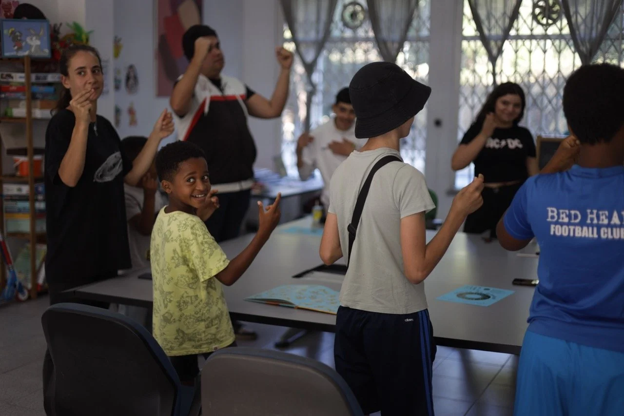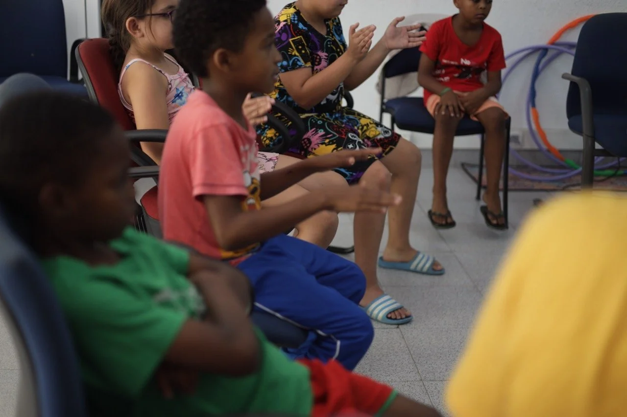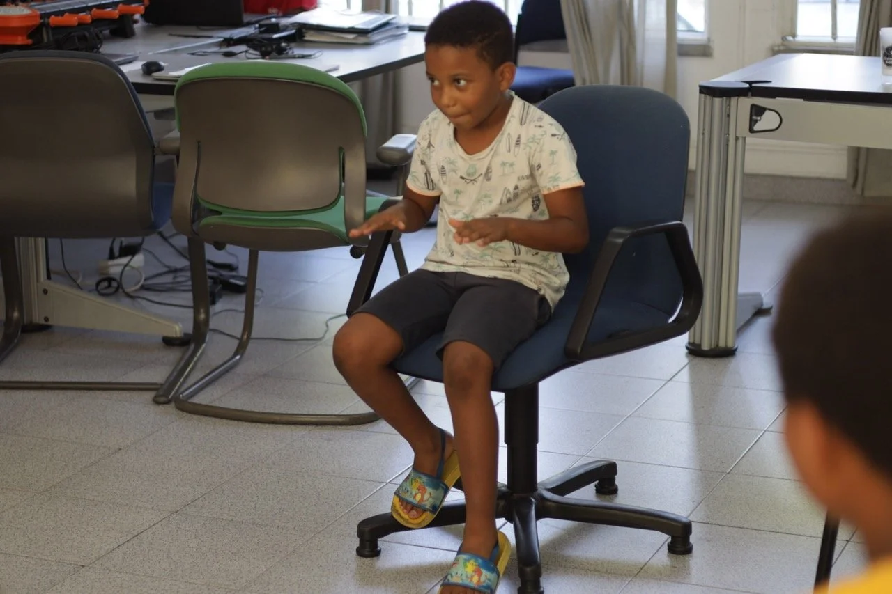 No fim do corredor, que é também o início, chegamos ao Quarto do som e do barulho. Aqui exploramos o som, transformando corpo e objectos em instrumentos de criação. Experimentamos o gesto, o ritmo e a escuta, cultivando a criatividade e o trabalho em equipa. Celebramos o poder do som como força de encontro, de ligação e de transformação colectiva.